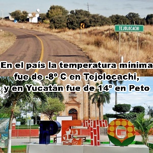 MÍNIMAS: Yucatán, 14º, Peto y Motul; México, -8º, Tejolocachi, Chihuahua