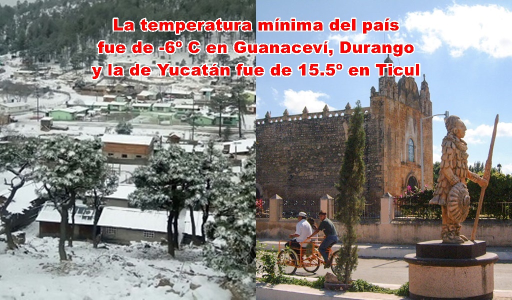 MÍNIMAS: Yucatán, 15.5º, Ticul; México, -6º, Guanaceví, Durango