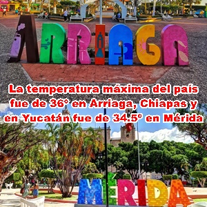 MÁXIMAS: Yucatán, 34.5º, Mérida Poniente; México, 36º, Arriaga, Chiapas