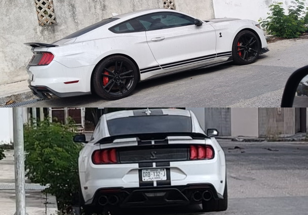 MÉRIDA, Yucatán, miércoles 28/01/26.- Alguien que tiene mucho dinero y que no quiere que se sepa que tiene un auto de $2.5 millones dejó abandonado en Ciudad Caucel un Ford Mustang Shelby GT500, modelo 2021 y placas n DRB-132-J del estado de Chiapas.