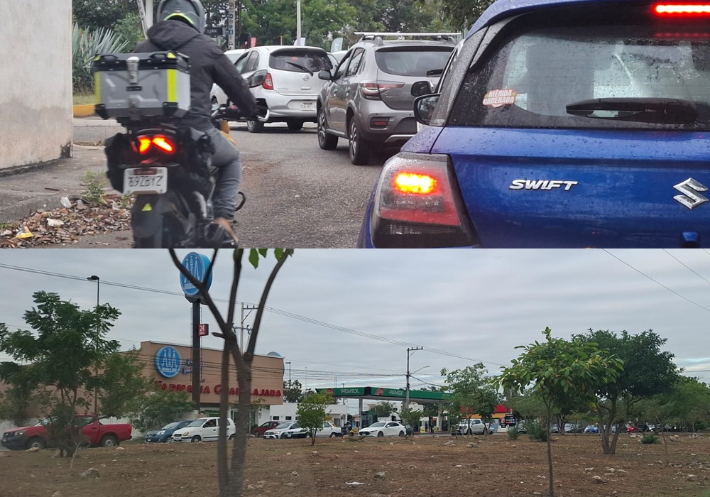 El fraccionamiento Ciudad Caucel, conocido por sus limitadas vías de salida, se convirtió en una trampa vial. El flujo de vehículos particulares, sumado a los autobuses de transporte público y el tráfico pesado ocasionó filas kilométricas que avanzaban a vuelta de rueda.