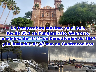MÍNIMAS: Yucatán, 16º C, Peto; México, -11.1º, Constitución de 1857, Ensenada, Baja California