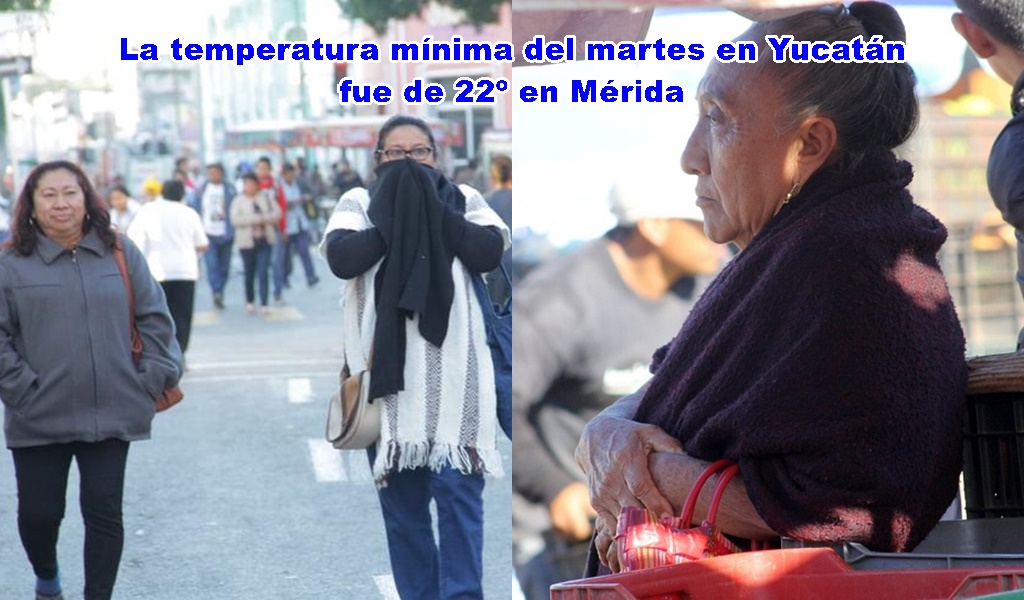 Por otra parte, ayer fue el día más fresco de año en la capital yucateca, con una temperatura máxima de 22º C en el Oriente meridano, en tanto que la temperatura máxima del estado fue de 28º C en Mocochá y Ticul.