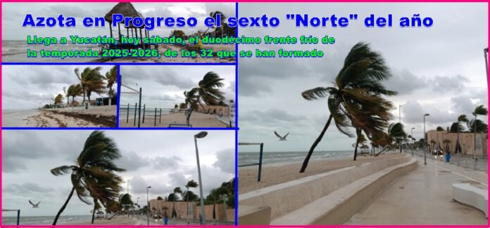 PROGRESO, Yucatán, sábado 31/01/26.- Tal y como se pronosticó, poco antes de las cinco de la mañana, cuando aún estaba oscuro comenzó a azotar las costas de Yucatán el norte del frente frio 32, con vientos de 40 a 50 kilómetros por hora, hoy sábado.