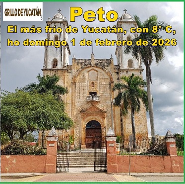 MÉRIDA, Yucatán, domingo 01/02/26.– El pronóstico de una temperatura mínima de 7º quedó a uno de cumplirse, pues hoy domingo el frío fue de 8º C en Peto, en tanto que en esta bella ciudad fue de 12º C, cuando se habían pronosticado 10º C.