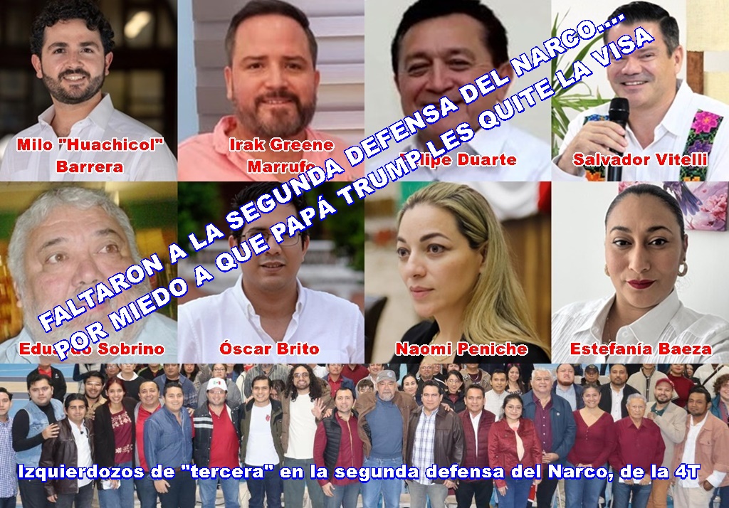 El miedo no anda en burro y temerosos de que Trump les retire sus visas y no puedan ir a comprar a Miami o atenderse en Houston, los funcionarios fifís de la 4T en Yucatán FALTARON a la segunda jornada de la defensa del narco… perdón de la soberanía a la que convocó Morena, ayer domingo en la noche, en el fraccionamiento Juan Pablo II.