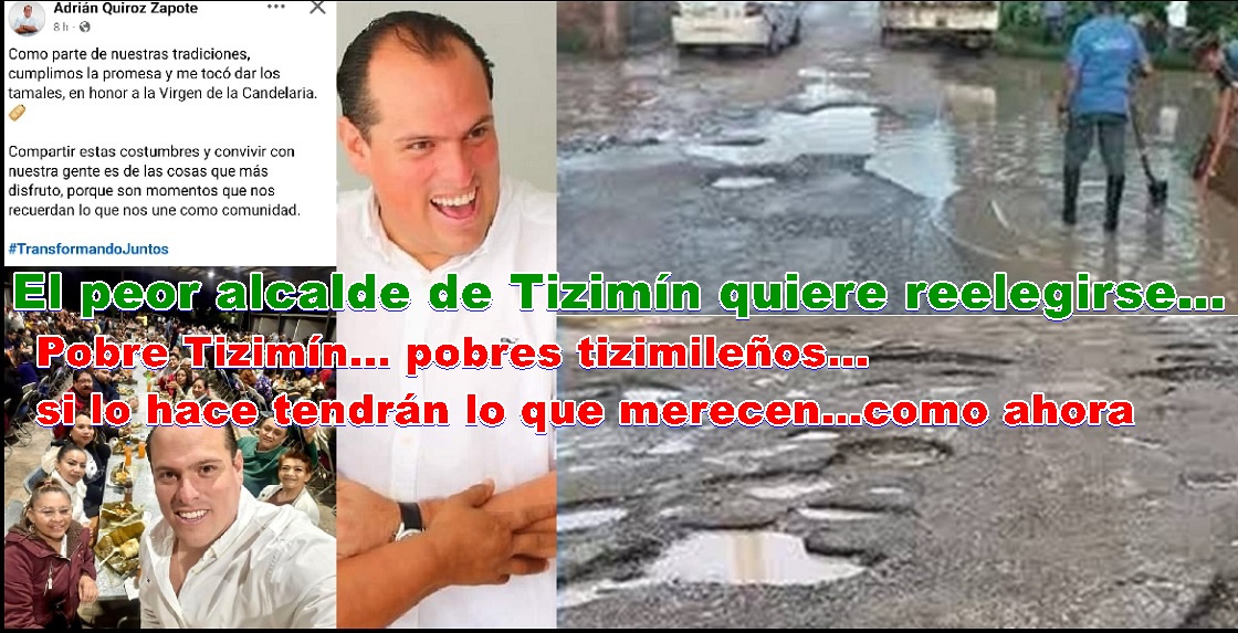 TIZIMÍN, Yucatán, martes 03/02/26.– Ante la cercanía para definir a sus candidatos, que será en agosto, el peor alcalde de la historia, Adrián “CaraBobo” Quiroz buscará reelegirse, a pesar de que es nefasto y de pésimos resultaos.