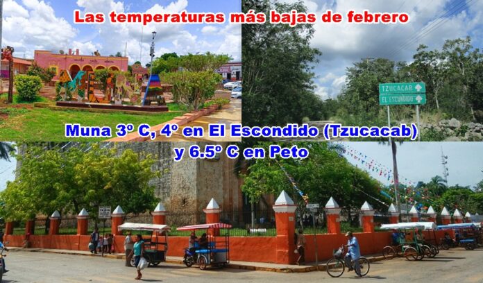 MÉRIDA, Yucatán, jueves 05/02/26.- Hoy jueves Yucatán llegó a NUEVE días consecutivos con temperaturas de menos de 15º C, de los cuales CUATRO son debajo de 8º: Domingo 1: 7.6º, El Escondido (Tzucacab); lunes 2: 3º, Muna; martes 3: 4º C, El Escondido (Tzucacab), y miércoles 4: 6.5º C, Peto.