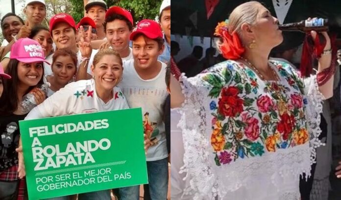 La fotografía, tomada durante la campaña de 2018 –en la que ella pedía el voto para José Antonio Meade (candidato a presidente) y para sí misma bajo las siglas del PRI y del Partido Verde-, la muestra sosteniendo un cartel que califica a Rolando Zapata como el mejor gobernador de México.