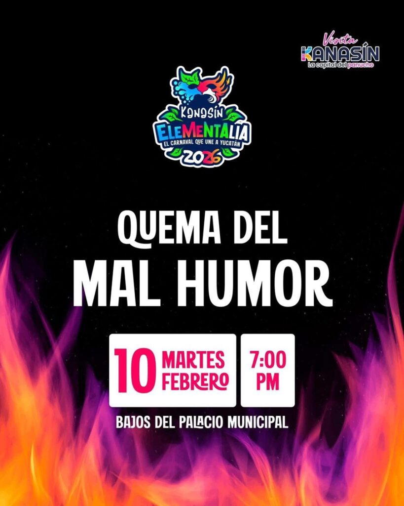El miércoles 18 de febrero será la Quema de Juan Carnaval a las 7 de la tarde en los bajos del Palacio Municipal, con lo que se dará fin de manera formal al Carnaval de Kanasín 2026.