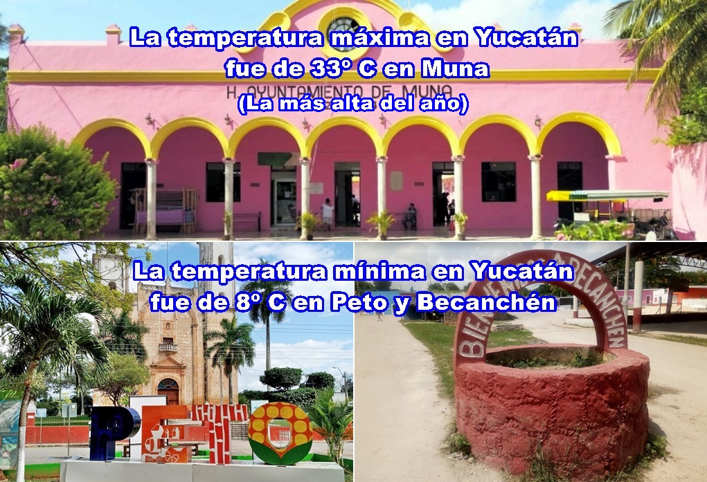 Domingo: 33º C, Muna; 8º C, Peto y Becanchén (Tekax)