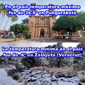MÍNIMAS: Yucatán, 8º C, Peto y Becanchén (Tekax); México, -6º, Zalayeta (Veracruz)