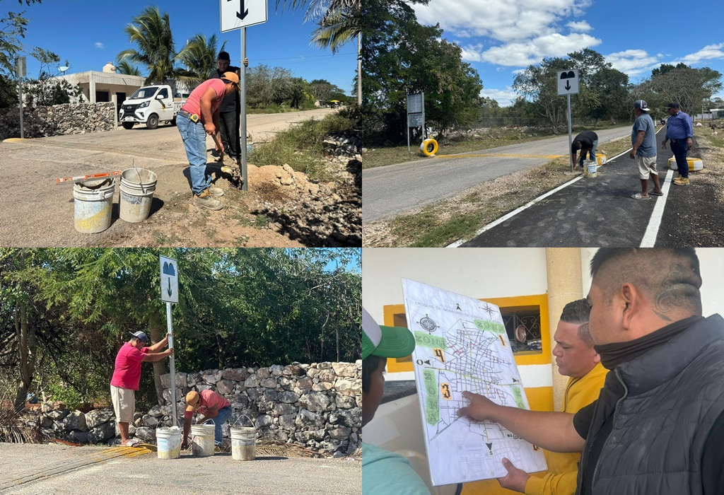 ESPITA, Yucatán, martes 10/02/26.- A fin de mejorar la seguridad vial y el ordenamiento del tránsito, la Comuna que preside el alcalde Mario Sánchez Esquivel instala nuevos señalamientos en calles de la cabecera municipal y en las comisarías.