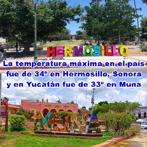 MÁXIMAS: Yucatán, 33º, Muna; México, 34º, Hermosillo, Sonora