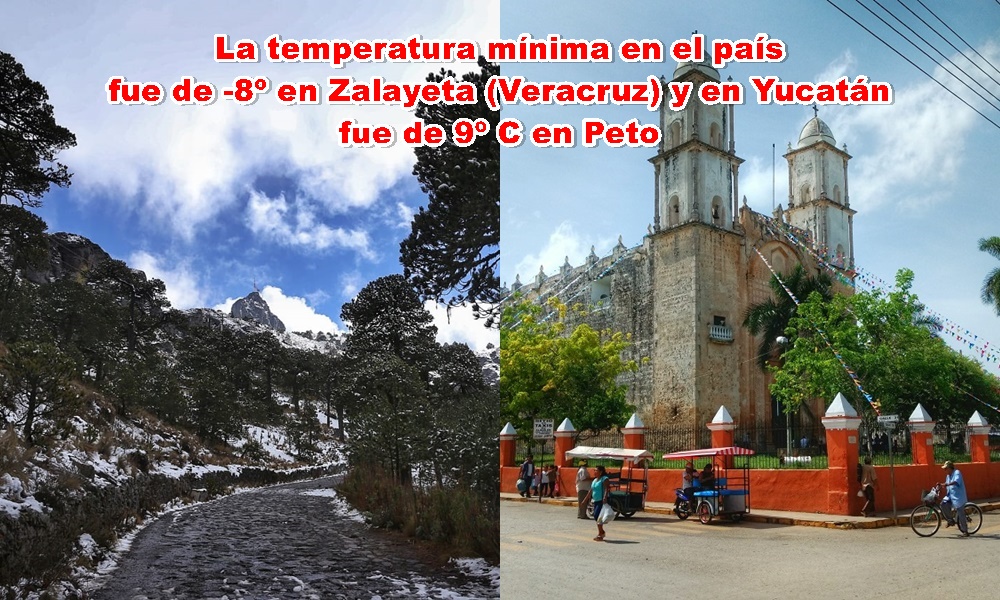 MÍNIMAS: Yucatán, 9º C, Peto; México, -8º, Zalayeta (Veracruz)
