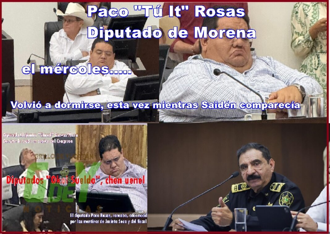 Mientras el titular de la SSP, el “Poli Dictador” (lleva casi una década en el cargo) Luis Saidén Ojeda, exponía los datos sobre la seguridad en Yucatán, Paco Rosas dormía a pierna suelta, arrullado por las cifras que desgranaba el “súper policía”.