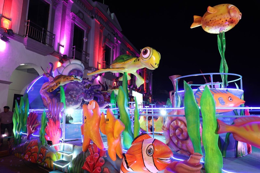 PROGRESO, Yucatán, viernes 13/02/2026.- En un ambiente de fiesta, orgullo y gran expectativa por las celebraciones del Carnaval, desfilaron los carros alegóricos del Carnaval de Progreso 2026, teniendo como sede los bajos del Palacio Municipal, donde autoridades municipales, integrantes del Comité del Carnaval y cientos de asistentes presenciaron la revelación oficial de la escenografía que acompañará a los soberanos durante los desfiles.