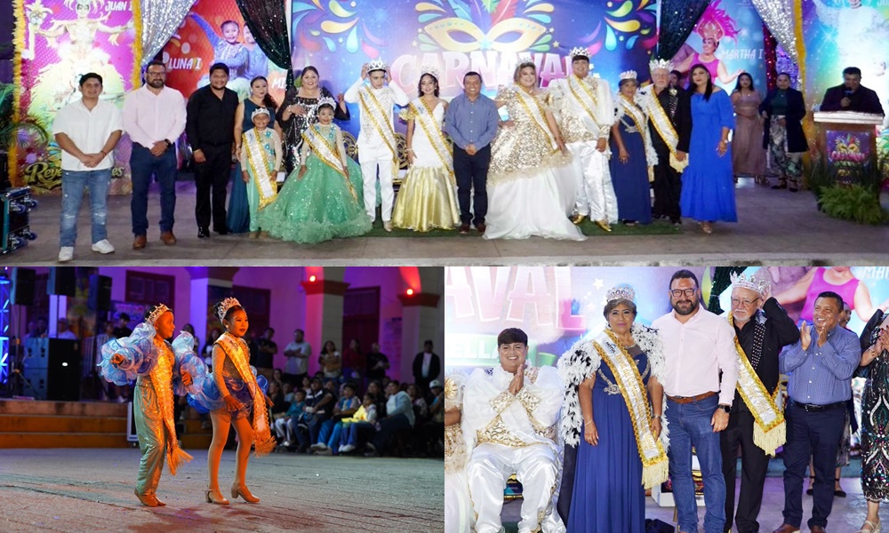 MOTUL, Yucatán, sábado 14/02/26.- En una noche llena de alegría, color y entusiasmo, el alcalde Lucio Estrella Canul encabezó la ceremonia de coronación de los soberanos del Carnaval Motul 2026.