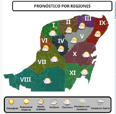 De 34 a 36º C en Mérida, Valladolid, Tizimín, Espita, Peto, Kanasín, Umán, Halachó, Maxcanú, Motul, Tixkokob, Tecoh y Acanceh