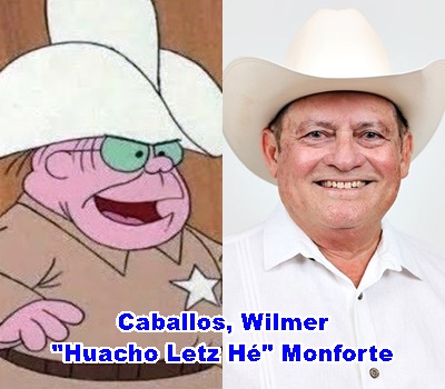 LOS CABALLOS: Que tienen su máximo representante en el Huacho Letz Hé Wilmer Monforte Marfil, un pueblerino mal educado que sólo se quita el sombrero para hacer tá, quien, como los caballos de la calesas, que tienen los ojos tapados, para que no se asusten por cualquier cosa, sólo ve, oye y hace lo que le dice el sanfelipeño. sólo obedece