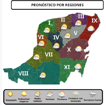 Luego de un amanecer con niebla y neblina, en algunas zonas de Yucatán, se espera cielo de despejado a medio nublado, ambiente de caluroso a muy caluroso, con vientos del Sur y del Sureste, con rachas en la costa de hasta 45 km/h, advierten Georgina Carrillo Martínez y Manuel Morales Quiñones, con revisión de Juan Vázquez Montalvo, el CHMDY y del CIAFEME.