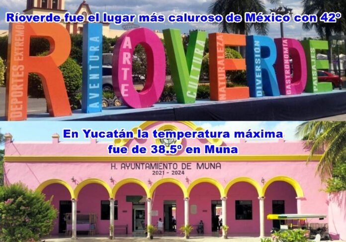 MÁXIMAS: Yucatán, 38.5º, Muna; México, 42º, Rioverde, San Luis Potosí