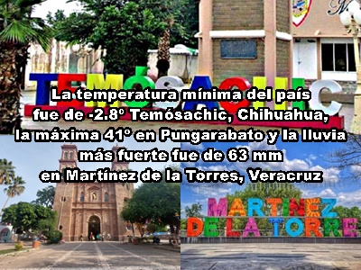 MÍNIMAS: Yucatán, 19.5º C, Ticul; México, -2.8º Temósachic, Chihuahua