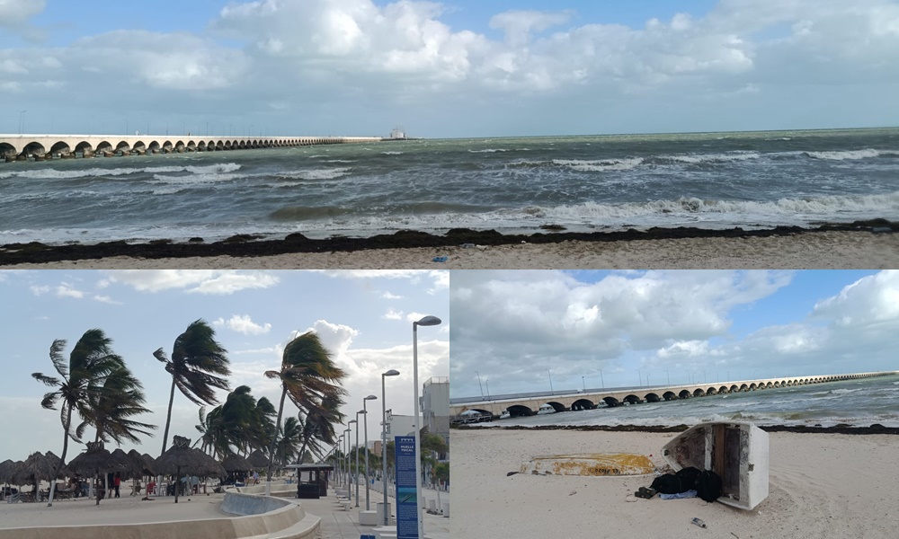 PROGRESO, Yucatán, lunes 23/02/26.- Hoy lunes continúan los efectos del octavo “Norte” del año, causado por el frente frio que desde ayer domingo en la tarde afecta las costas de Yucatán, con vientos de 50 a 60 km por hora.
