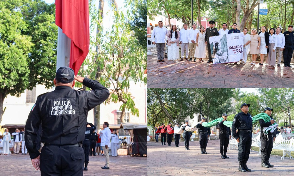 VALLADOLID, Yucatán, martes 24/02/26.- El presidente municipal, Homero Novelo Burgos encabezó hoy la ceremonia cívica, en la que se izó la bandera a toda asta, con motivo del Día de la Bandera.