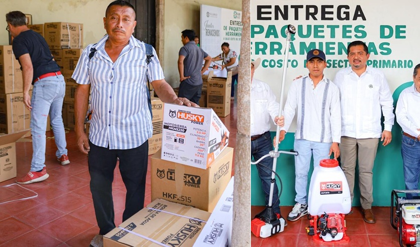 Durante la ceremonia entregaron 25 paquetes de herramientas a familias de las comisarías de Bolmay, Koopchén, Tahmuy, Tikuch, Ebtún, Xocén, Yaax Hal y la cabecera municipal de Valladolid.
