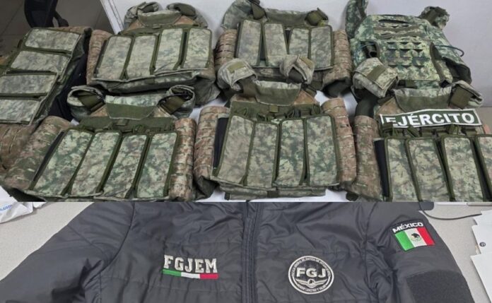 Dentro del inmueble, que operaba como bodega, se hallaron chamarras y chalecos con insignias del Ejército, FGJEM, Policía de Investigación de la FGJ-CDMX y de corporaciones de bomberos y paramédicos.