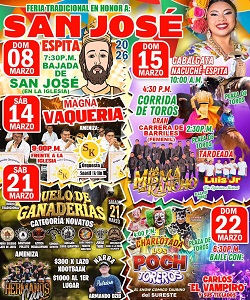 El sábado 21 se efectuará el suelo de ganaderías y el domingo 22 habrá una charlotada con los “Poch Vaqueros”, a las 16:00 horas y la fiesta finalizará con un baile con Carlos, el vampiro de los teclados.