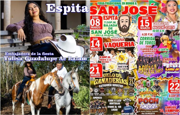 ESPITA, Yucatán, sábado 07/03/26.- La Atenas de Yucatán se vestirá de gala y de manteles largos durante 14 días, con motivo de la fiesta en honor a San José, que se llevará al cabo de domingo 8 al domingo 22 de este mes.