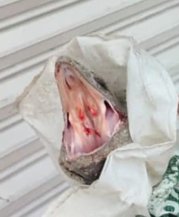 Según el reporte, el afectado intentó someter al reptil pisándole la cola, lo que provocó la reacción defensiva del animal, que le propinó una mordida en la mano.