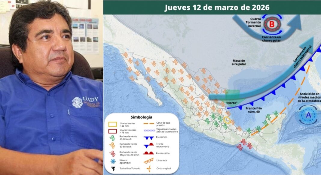 De acuerdo con el Gurú del clima en Yucatán, Juan Vázquez Montalvo, el frente frío 40 se acercará a la zona el próximo jueves, PERO no se espera que afecte, pues no pasará por el estado, de modo que sólo aumentará la posibilidad de potencial de lluvias vespertinas y nocturnas.