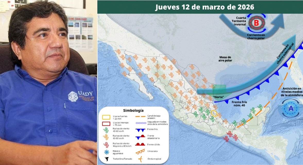 MÉRIDA, Yucatán, lunes 09/03/26.– Esta semana será muy caluroso de lunes a miércoles, en tanto que del jueves al sábado, las temperaturas máximas bajará, debido a que se acercará, sin tocar tierra yucateca, el frente frío 40.
