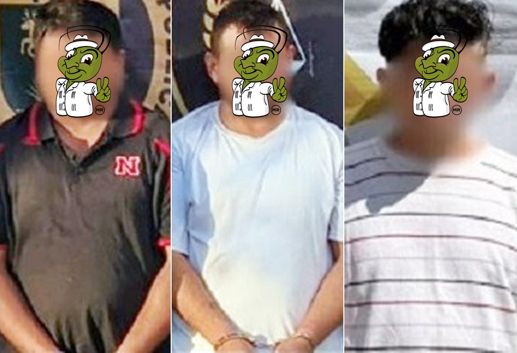 KANASÍN, Yucatán, martes, 10/03/26.- Más tardaron en asesinar a Reyes Ricardo que en que los identificaron y los detuvieron: Se trata de los mininarcos José Ángel U.G. (a) “Chilango”, de 38 años de edad y originario del Estado de México, y los meridanos Freddy del Jesús G.F., y José Iván S.C., (a) “Porongas”, de 41 y 35 años de edad.
