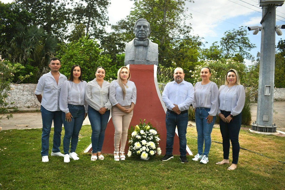 OXKUTZCAB, Yucatán, domingo 22/03/26.- En el marco de la conmemoración del 220.º aniversario del natalicio de Benito Juárez García, el alcalde Juan José Martín Fragoso encabezó un homenaje al Benemérito de las Américas, cuyo legado se mantiene como una guía vigente para nuestra sociedad.