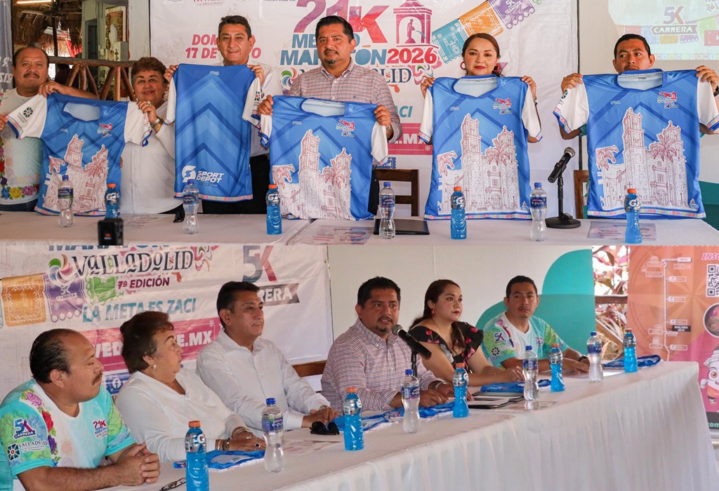 VALLADOLID, Yucatán, martes 24/03/26.- El alcalde Homero Novelo Burgos participó en la rueda de prensa del Medio Maratón Valladolid 2026, que se llevará a cabo el próximo 17 de mayo e invitó a corredores locales, nacionales e internacionales a que participen.
