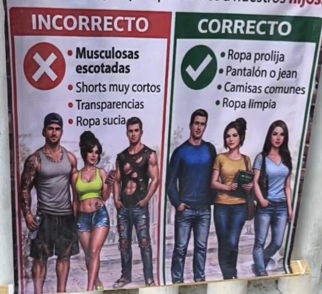 En el aviso, dirigido a padres y tutores, la escuela pide cuidar el ejemplo que se da a los hijos, y mencionan como “incorrecto” el uso de ropa como: