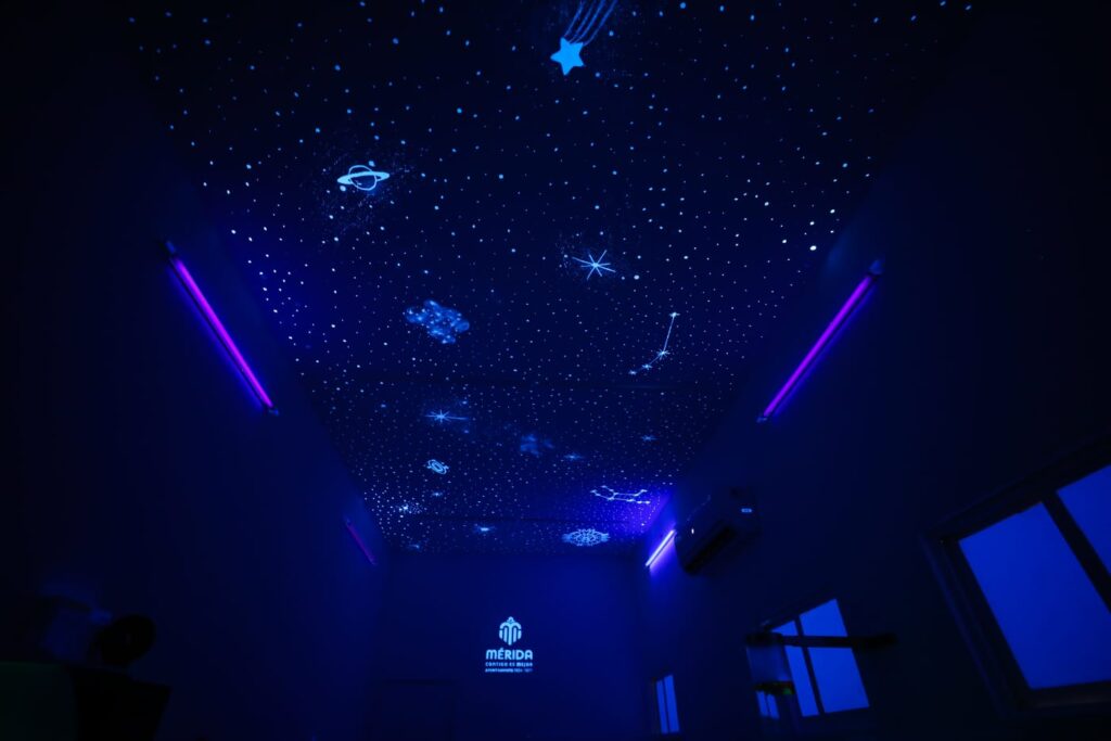 Asimismo cuenta con alberca sensorial, espejos con tubo de burbujas, panel de aromaterapia integral, cama de agua, panel de texturas, panel de entrenamiento táctil, alberca de pelotas, pared de escalada, panel de actividades mixtas, cama elástica, pasillo de texturas y columpio hamaca vestibular.