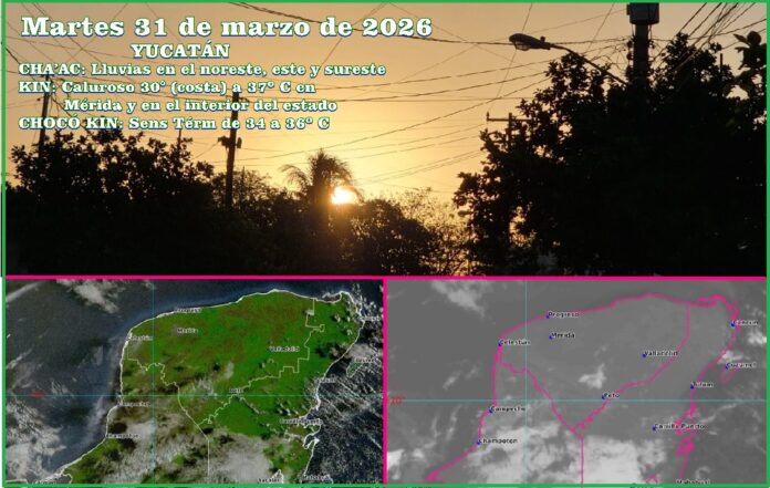 De 32 a 34º C en Kanasín, Valladolid, Chemax, Peto, Umán, Halachó, Maxcanú, Hunucmá, Motul, Tixkokob, Tecoh y Acanceh