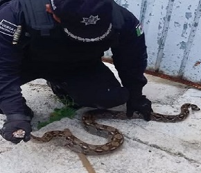 A través de un reporte ciudadanos a la Dirección de Seguridad Pública y Tránsito Municipal policías municipales tomaron conocimiento que una víbora Ochcan, como se le conoce en la Península de Yucatán, estaba sobre el pavimento, de modo que los uniformados acudieron al lugar.