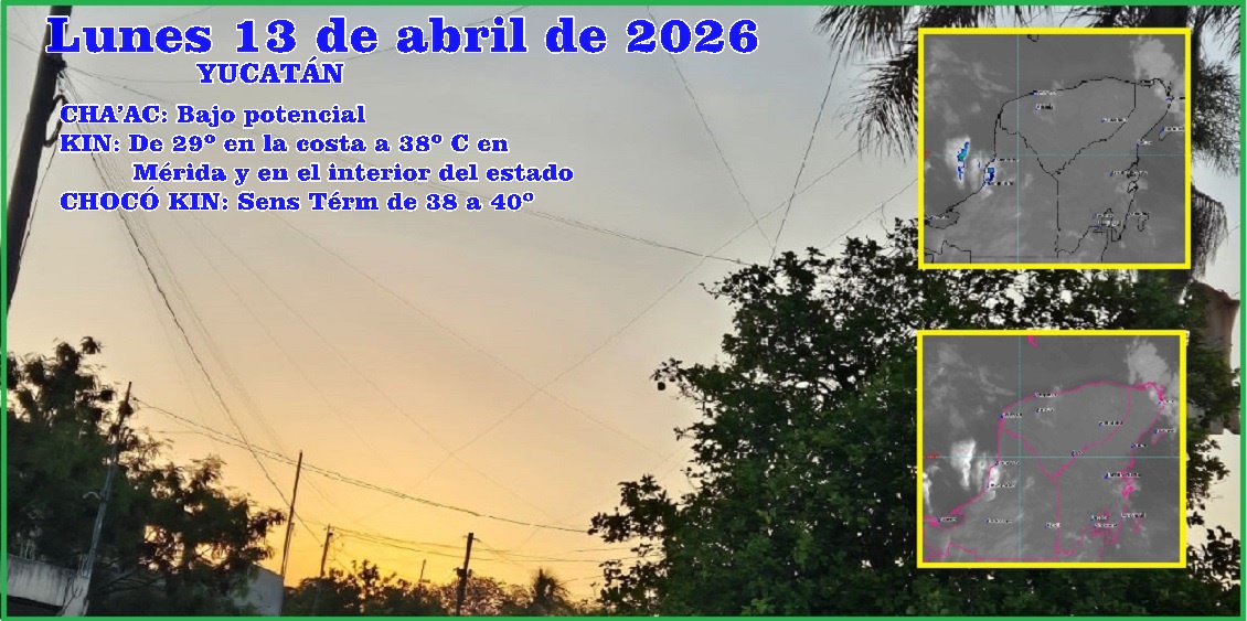 MÉRIDA, Yucatán, lunes 13/04/26.- Luego de 12 días con clima fuera de lo común en abril, hoy empieza una semana calurosa, que al final de la misma será muy calurosa, aunque seguirán los amaneceres frescos en el interior del estado y templados en Mérida.
