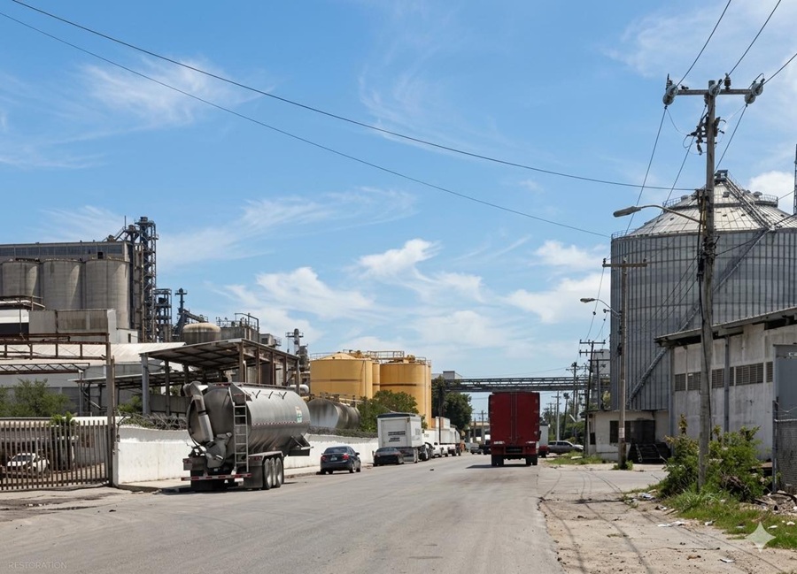 MÉRIDA, Yucatán, martes 14/04/2026.- La peligrosa inclinación de un silo de 30 metros de altura, en la Ciudad Industrial, motivó la movilización de los servicios de emergencia y el desalojo de los empleados, ante el riesgo de colapso de la estructura.