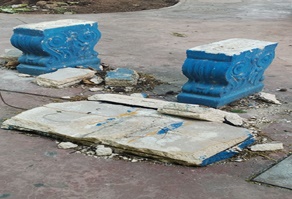 Ante la incompetencia del alcalde morenista Carlos Esteban Argáez Be y la corrupta policía municipal, los vándalos ya no respetan ni los espacios públicos: Esta vez destrozaron una banca antigua de concreto emblemática del parque de la esquina de las cinco calles.