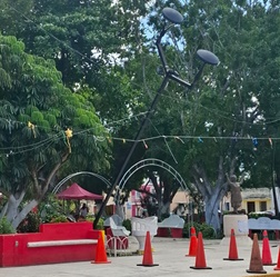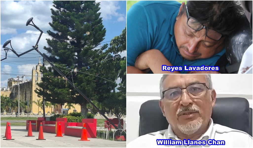 EL PRETEXTO: Ante el creciente malestar social, el alcalde Llanes Chan intentó justificar el porque no quita el poste, durante una transmisión en vivo, y dijo que no han retirado el poste debido a que esperan a que la empresa aseguradora del vehículo responsable acuda a repararla y reinstalarla.