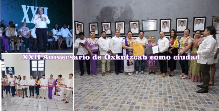 OXKUTZCAB, Yucatán, domingo 19/04/26.– Con una sesión solemne de Cabildo y la inauguración de la Galería de los Presidentes Municipales, el alcalde Juan José Martín Fragoso encabezó los festejos por el XXII aniversario de Oxkutzcab como ciudad.