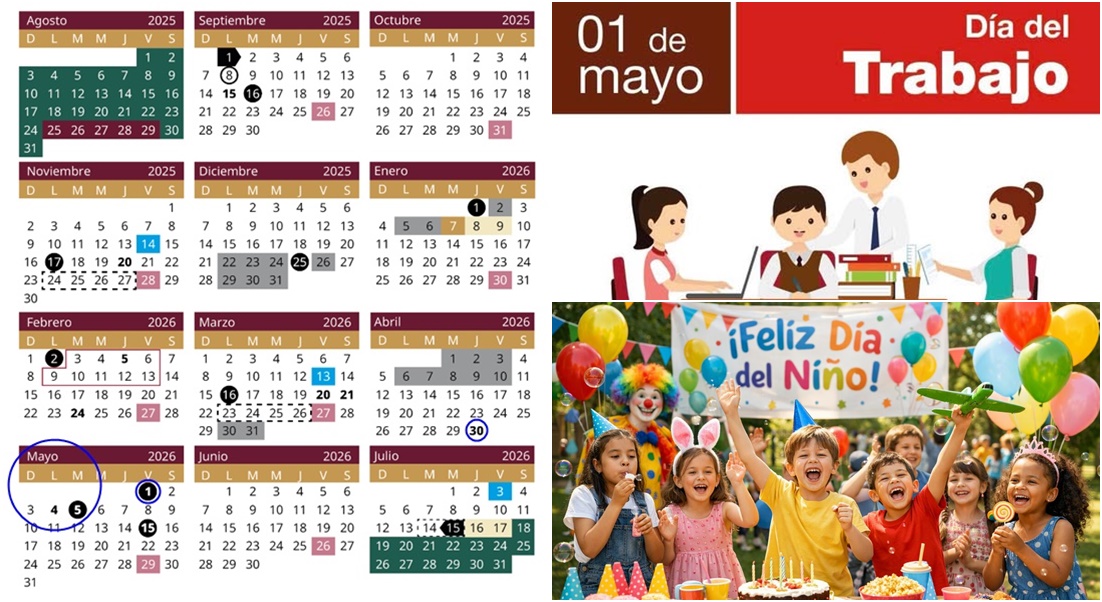 EL MEGAPUENTE: De acuerdo con el calendario de la Secretaría de Educación Pública (SEP), comenzaría desde el jueves 30 de abril, cuando se celebra el Día del Niño, al día siguiente, viernes 1 de mayo es Día del Trabajo y tampoco habrá clases, ya que es considerado día inhábil.
