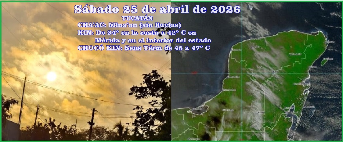 MÉRIDA, Yucatán, sábado 25/04/26.– El calor será tremendo hoy en el Sur, Sureste, Cono Sur y Suroeste de Yucatán, en donde las temperaturas máximas serán de hasta 42º C y con una sensación térmica de 47º C, advierte el IC Juan Vázquez Montalvo, vocero del CIAFEME UADY.